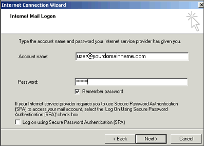 8. Enter your email address for the Account Name. Enter the password you set for this account.