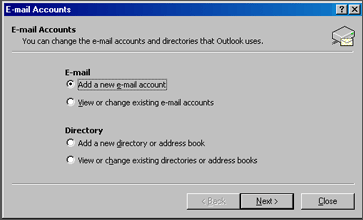 2. Select Add a new email account and then click Next.