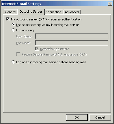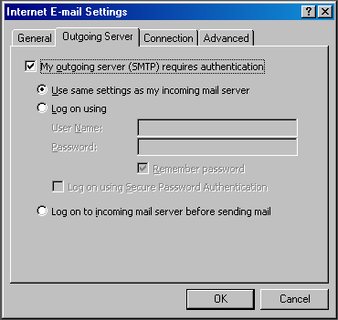 8. IMPORTANT! On the Outgoing Server tab, check My outgoing server (SMTP) requires authentication.